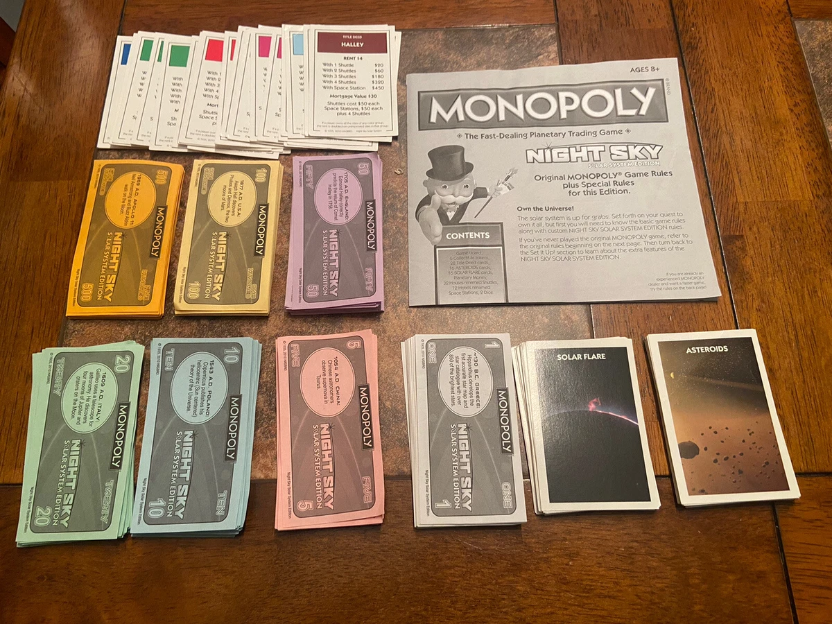 Monopoly Night Sky Solar System Edition Cash, Properties, Cards