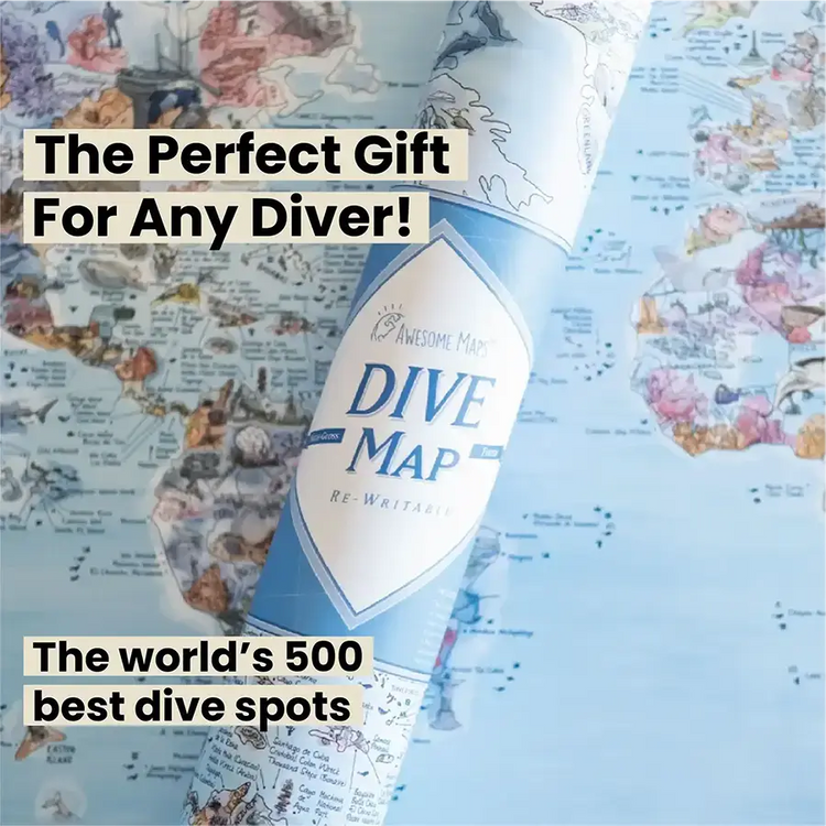 World Dive Wall Map Hand Drawn Poster of SCUBA Diving Sites